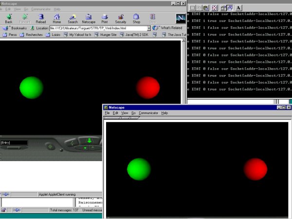 Lorsqu’un utilisateur clique sur une sphère, la sphère change de couleur sur tous les clients (plugin VRML + applet) connectés.